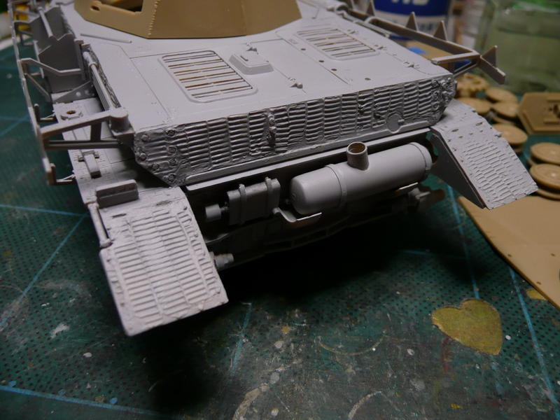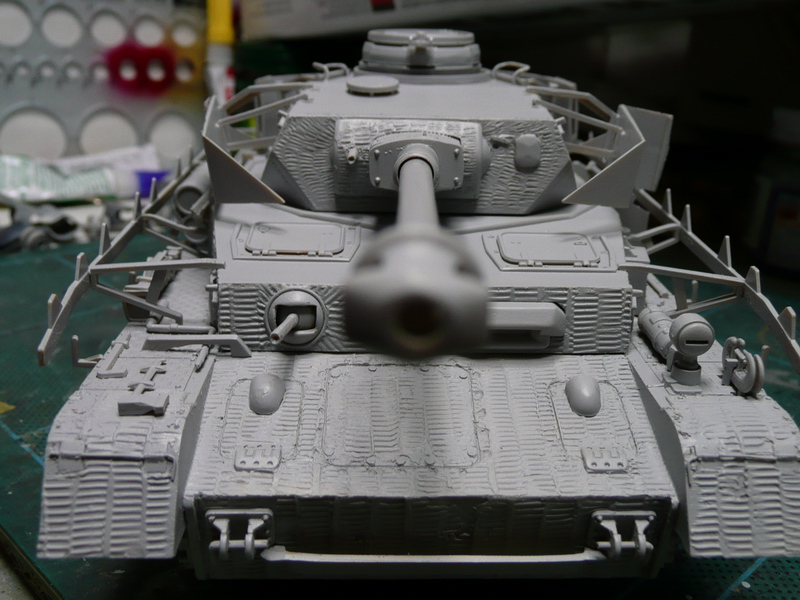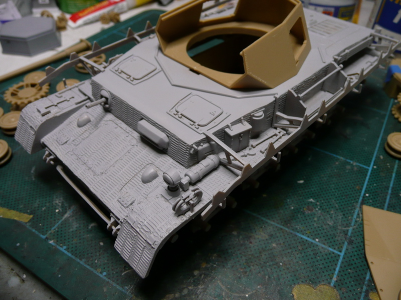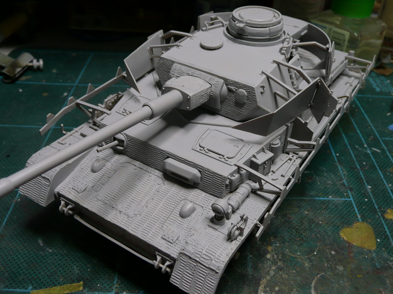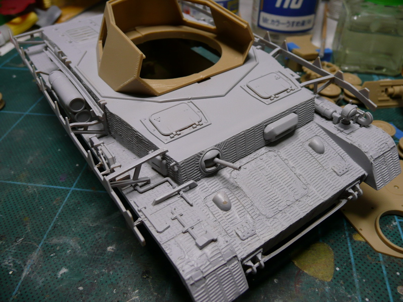 After construction of the turret, the whole vehicle is primed ready for a paintjob.
