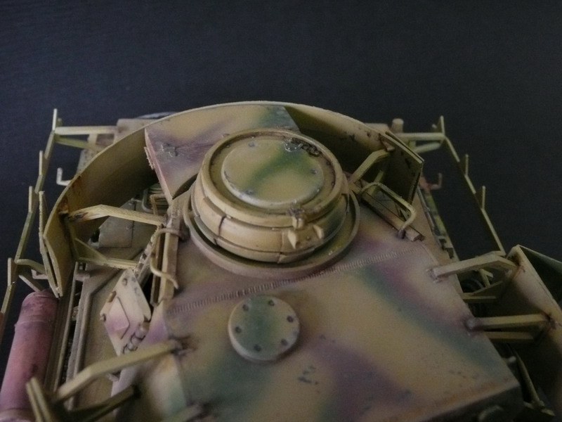 Weathering with chip marks using acryllics and rust stains using oils are added. Using thin applications of Tamiya buff, some light dusting and rain marks is applied.