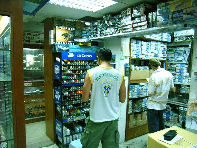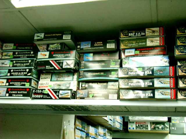 Hemmed in on 3 of its 4 sides by a glass frontage, a first-time visitor is greeted with an impressive, floor to ceiling display of finished model kits which range from planes, AFVs, figures, ships as well as boxes and boxes of model kits of various scales and makes. Stepping inside one will find the inside differing little from the exterior as almost all the shelves not to mention every nook and cranny well stocked with model kits, paints, modelling accessories, aftermarket products and parts and books. Mr. Low can usually be found behind the counter at the nerve center of the shop.