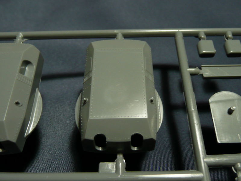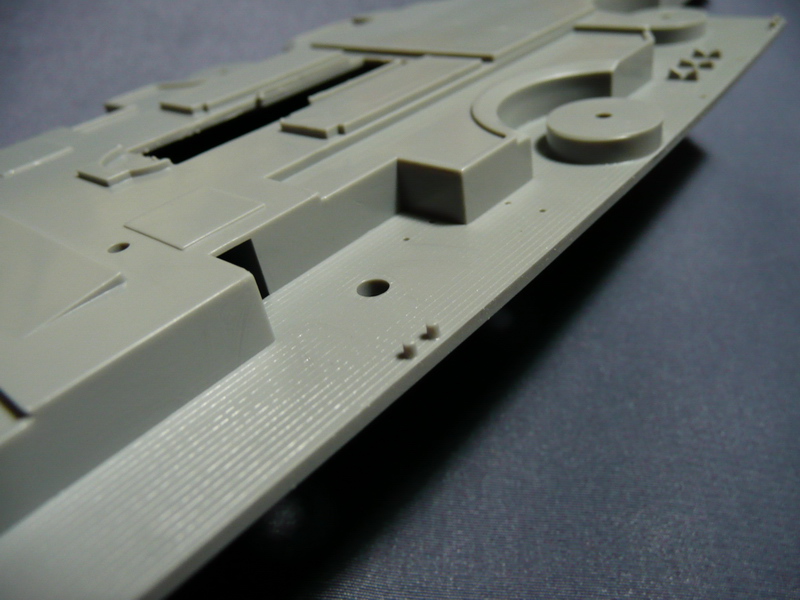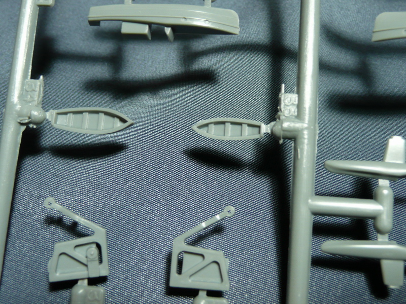 The main hull is provided in one piece. There is a seam that runs from fore to aft of the hull and this needs to be taken care of. Moulded on step ladders are provided at the rear of the hull as well as port holes at the fore and aft. A little bit of blemish can be seen around the porholes of my copy.