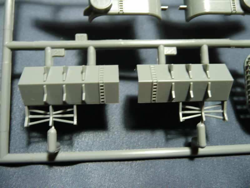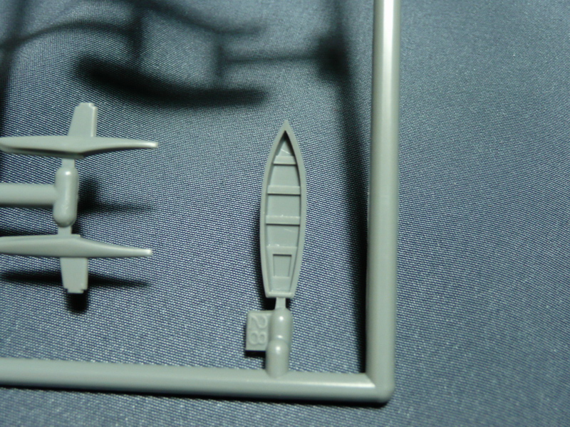 The Arado aircraft is provided as a solid piece of styrene and the advanced modeller will probably want to do something about the solid canopy. The balkenkruez is molded onto the wings of the plane as raised lines. As no decals are provided, this marking will have to be done with some careful masking /hand painting or with decals from the spares storehouse.