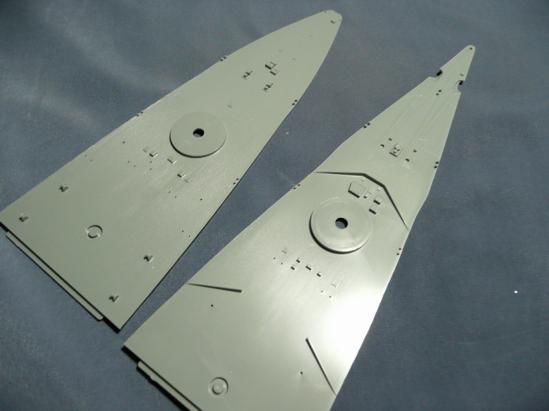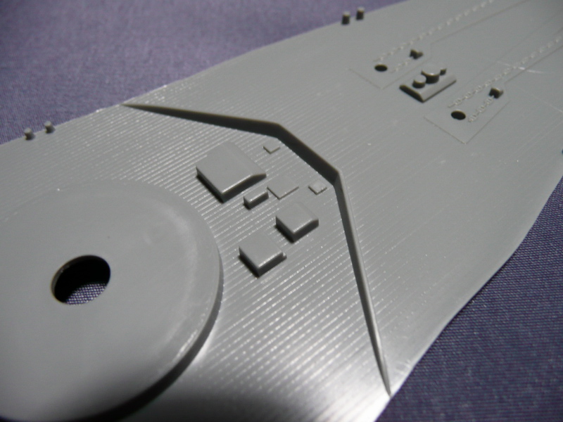 The upper decks are smooth and do not have any representation of wooden planking or even steel textures. All this can be added with after market photoetch sets, though at additional cost to one's modelling budget.