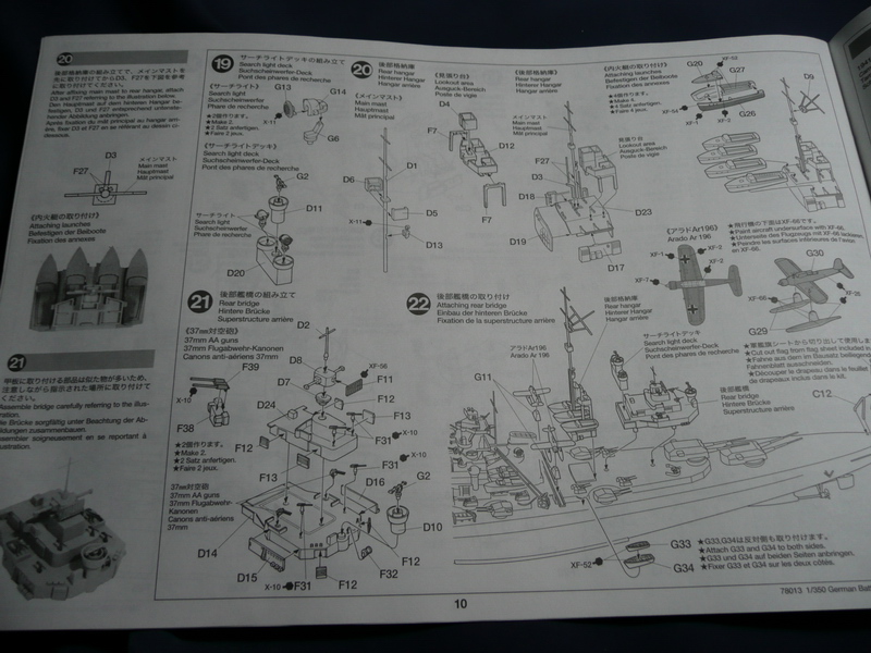 The instructions booklet provides the specs and a short history of the Bismarckright up to its fateful demise. Assembly instructions are carried out over 22 steps in with clear pictorials and is not at all complicated.