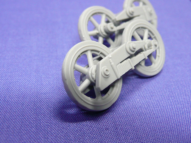 Step 1: After cleanup of the wheels with a sanding sponge, they were stressed with a knife to indicate wear and tear. Do note that the external facing side of the wheel has indentations. As the tree connecting part of the wheel arms are rather thick, a bit of cleanup is required. I left the wheels in free spinning mode by not gluing them to the arm so that the painting later is easier.