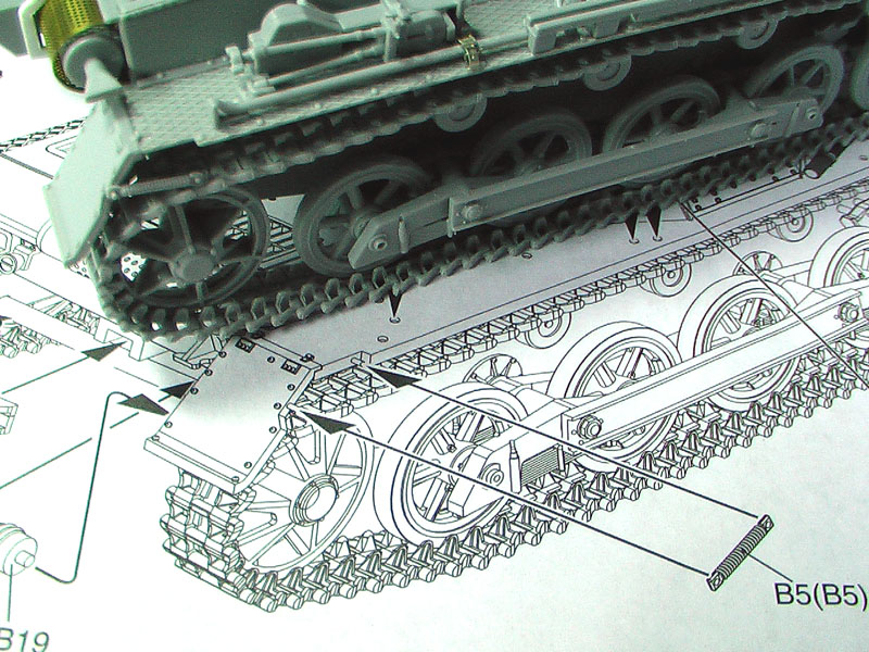 Step 12:Hull attachments: Parts B5 is missing a holding pin which is depicted in the diagram. Clearly this was overlooked but need no major work. A bit of liquid cement will quickly allow joining to the plates.