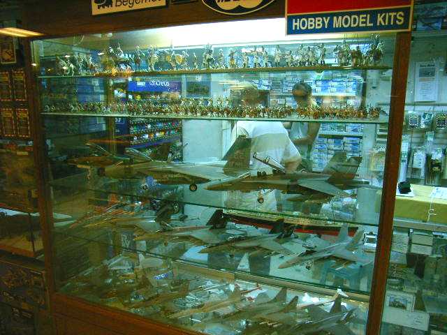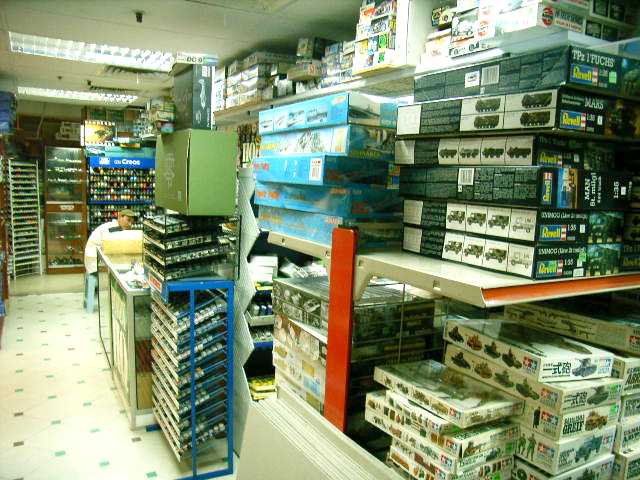 Hemmed in on 3 of its 4 sides by a glass frontage, a first-time visitor is greeted with an impressive, floor to ceiling display of finished model kits which range from planes, AFVs, figures, ships as well as boxes and boxes of model kits of various scales and makes. Stepping inside one will find the inside differing little from the exterior as almost all the shelves not to mention every nook and cranny well stocked with model kits, paints, modelling accessories, aftermarket products and parts and books. Mr. Low can usually be found behind the counter at the nerve center of the shop.