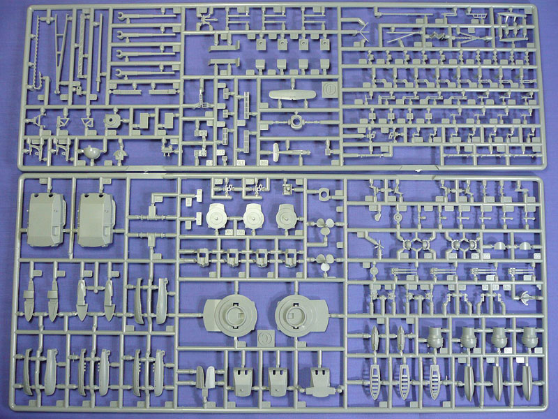 Packed into a rather large box, it became only too obvious why it is so. This new tooled kit is well executed with a single piece hull and a rather unconventional join along the length of the ship for the lower hull.