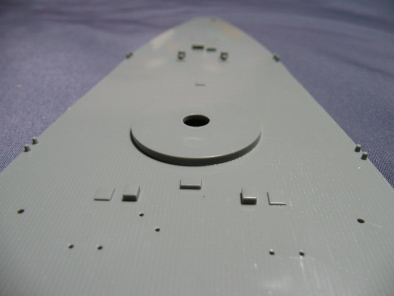 The upper decks are smooth and do not have any representation of wooden planking or even steel textures. All this can be added with after market photoetch sets, though at additional cost to one's modelling budget.