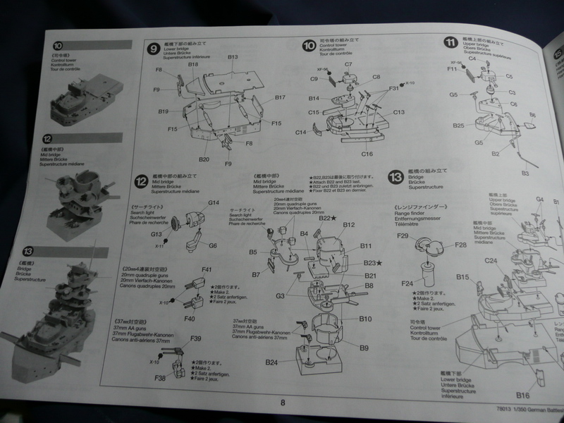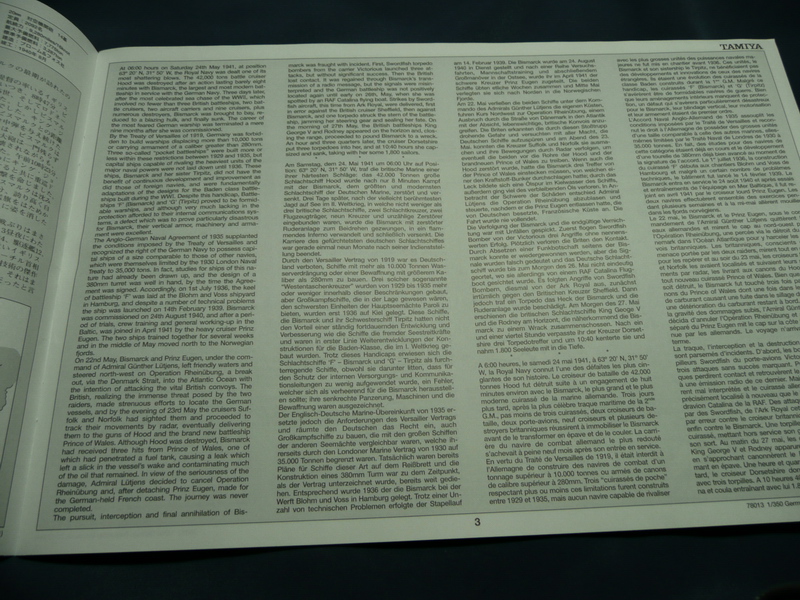 The instructions booklet provides the specs and a short history of the Bismarckright up to its fateful demise. Assembly instructions are carried out over 22 steps in with clear pictorials and is not at all complicated.